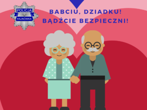 Dzień Babci i Dziadka to najlepszy czas, żeby zadbać o bezpieczeństwo seniorów. Mimo licznych ostrzeżeń i apeli, nadal dochodzi do zdarzeń, gdzie starsze osoby padają ofiarami przestępstw. By uchronić je przed niebezpieczeństwami mundurowi prowadzą działania profilaktyczne, spotykają się z seniorami i informują o zagrożeniach. Z uwagi na zbliżający się Dzień Babci oraz Dzień Dziadka udostępniamy wkładkę do laurki. Znajduje się w niej katalog porad dla osób starszych. Zachęcamy do pobierania i wydruku załączonego pliku, aby ostrzeżenia wraz z życzeniami trafiły do babć i dziadków w dniu ich święta.