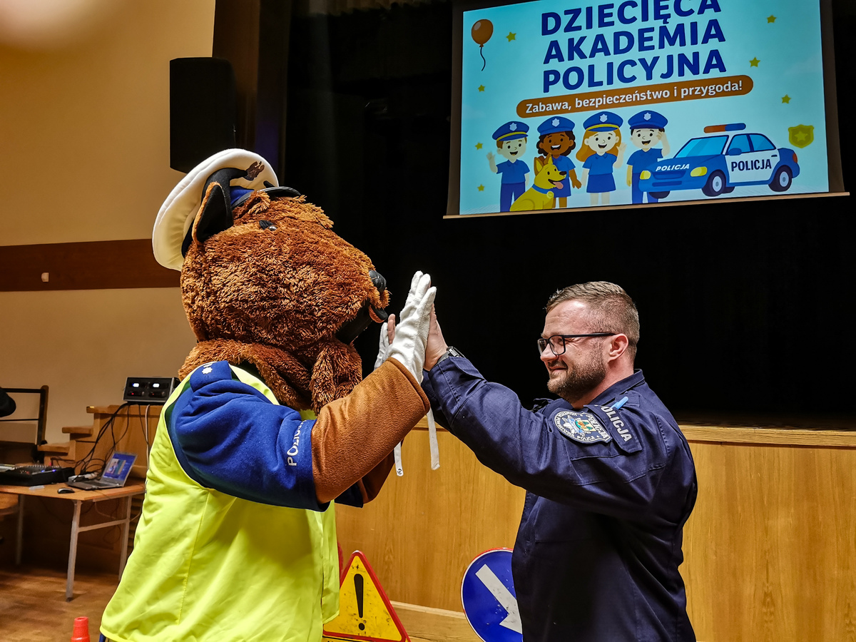Dziś w Hajnowskim Domu Kultury odbyła się Dziecięca Akademia Policyjna. W trakcie zajęć nie zabrakło rozmów o bezpieczeństwie, jak również dobrej zabawy. Dzieci wzięły udział w zajęciach sportowych z policyjnym instruktorem oraz quizie o bezpieczeństwie. Jedną z atrakcji był również odblaskowy pokaz mody. Uczestnicy Akademii dowiedzieli się także jaki sprzęt wykorzystują policjanci w codziennej służbie. Na zajęcia dotarł Komisarz Żubrewicz, który włączył się do wspólnej zabawy.