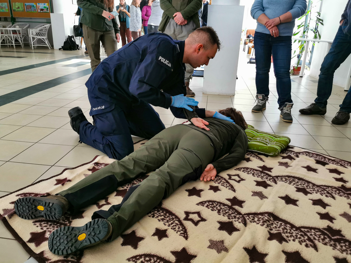 Policjanci chętnie dzielą się swoją wiedzą i doświadczeniem. Tym razem mundurowi szkolili licencjonowanych przewodników turystycznych z udzielania pierwszej pomocy. Udział w zajęciach wzięło blisko 100 osób. Szkolenie odbyło się w ramach współpracy hajnowskiej komendy z Białowieskim Parkiem Narodowym, przy wsparciu policjantów z Komendy Miejskiej Policji w Białymstoku. Białostoccy policjanci z uprawnieniami państwowymi z zakresu medycyny ratunkowej mówili i pokazywali jak reagować w sytuacji zagrożenia zdrowia i życia. Część praktyczną poprzedziła prelekcja na temat właściwego postępowania w przypadku zadławienia, czy też zasłabnięcia. Policjanci mówili także jakie informacje są istotne w trakcie wzywania służb medycznych. Przewodnicy BPN-u wzięli następnie udział w praktycznych zajęciach z zakresu tamowania krwotoków. Sporą część zajęć poświęcono ćwiczeniom z zakresu resuscytacji krążeniowo - oddechowej, do których wykorzystano fantomy oraz automatyczny defibrylator zewnętrzny.