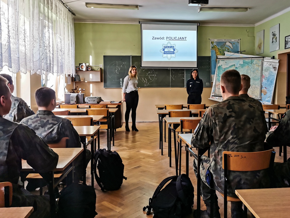Policjanci oraz pracownica Zespołu Kadr i Szkolenia Komendy Powiatowej Policji w Hajnówce prowadzą cykl spotkań z uczniami szkół średnich, podczas których opowiadają o służbie w Policji. Wczoraj przedstawicielki komendy spotkały się z młodzieżą z klasy mundurowej I Liceum Ogólnokształcącego w Hajnówce. Uczniowie dowiedziali się na czym polega praca w Policji oraz jak wygląda ścieżka kariery zawodowej policjanta. Podczas zajęć omówiono także zagadnienia dotyczące doboru do służby. Pracownica kadr przybliżyła kolejne etapy rekrutacji oraz warunki jakie musi spełnić kandydat, który chce zostać policjantem. Z kolei mundurowa opowiedziała młodzieży o specyfice swojej pracy, a także o satysfakcji jaką daje służba w Policji.